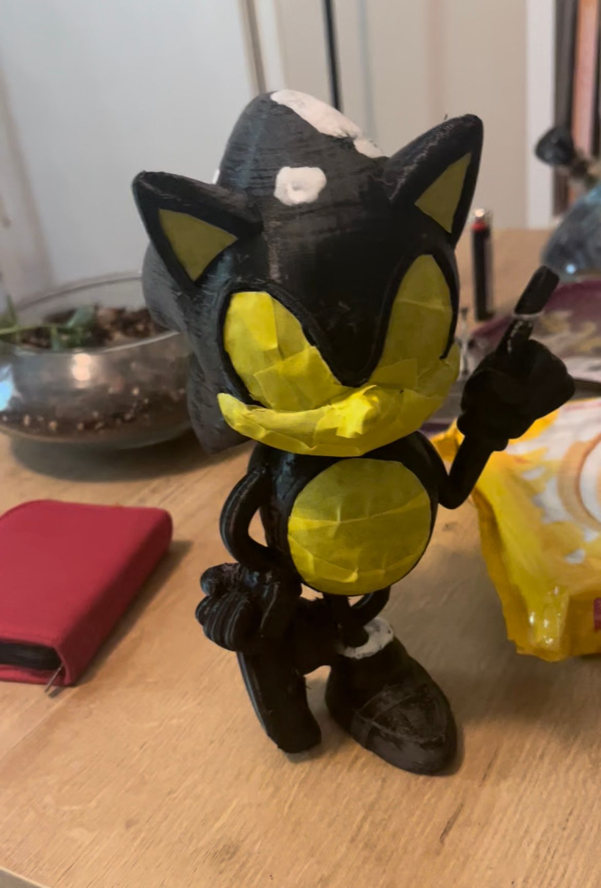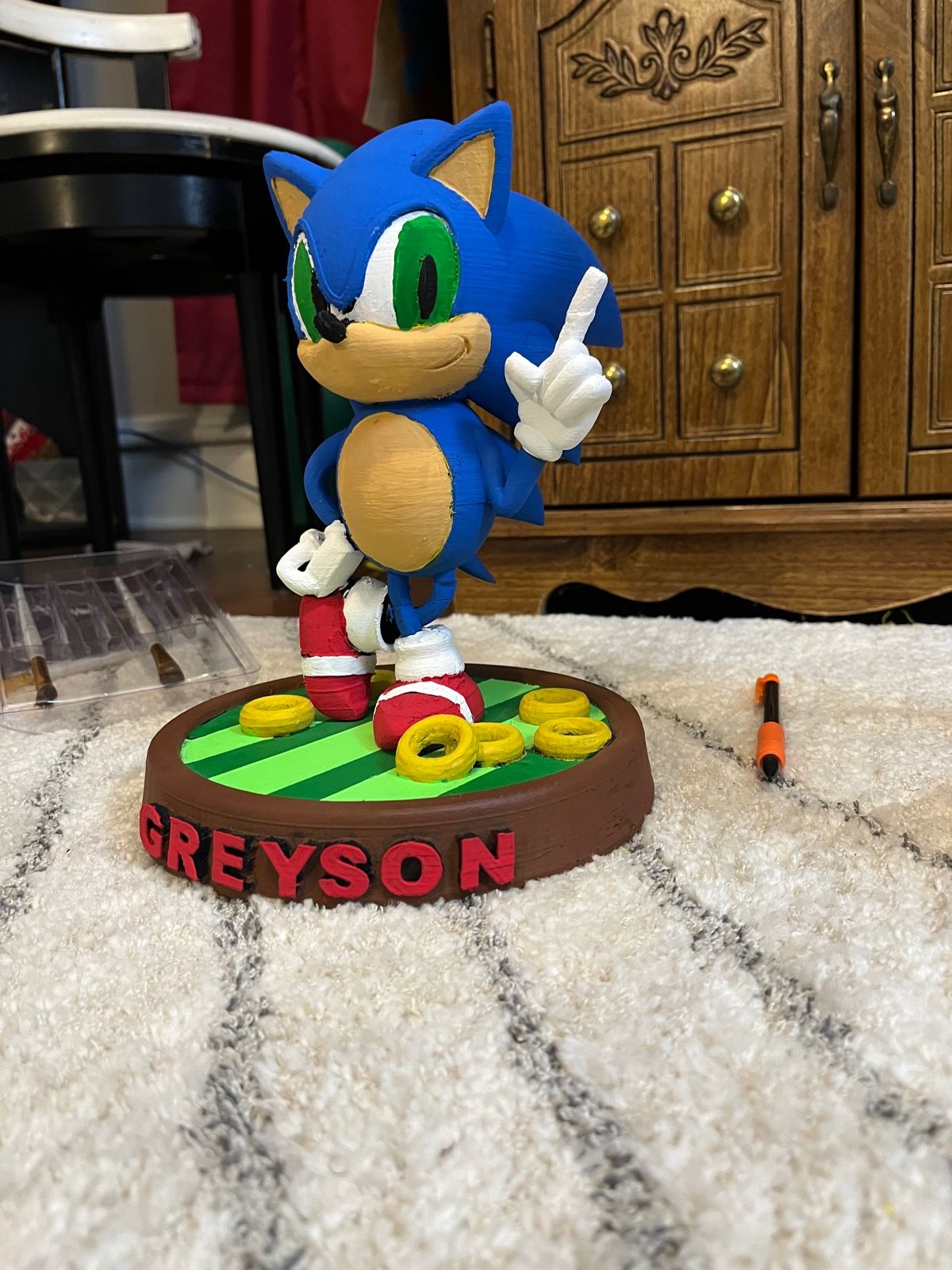 I found a lovely print to start working with after diving deep into the .stl and .obj rabbit hole that is Thingiverse and Cults3D. Having a file is one thing, but a successful print is another, so I started with a mini Sonic. As my father would say, "measure twice, cut once."