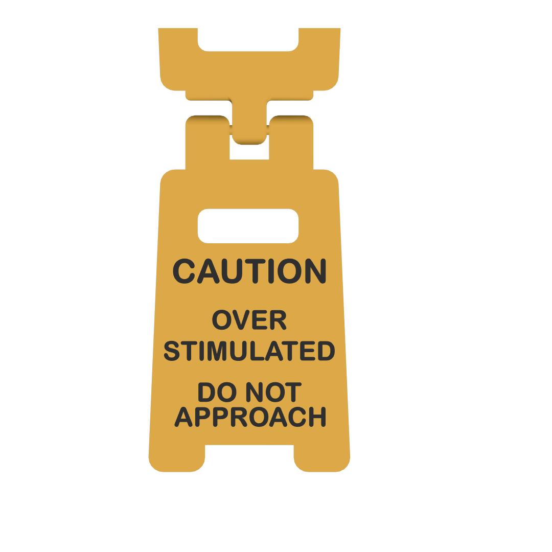 Color: Bright yellow with bold black lettering (classic caution sign style)