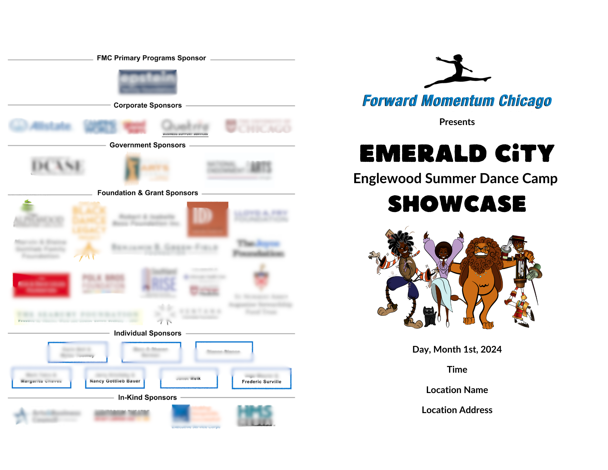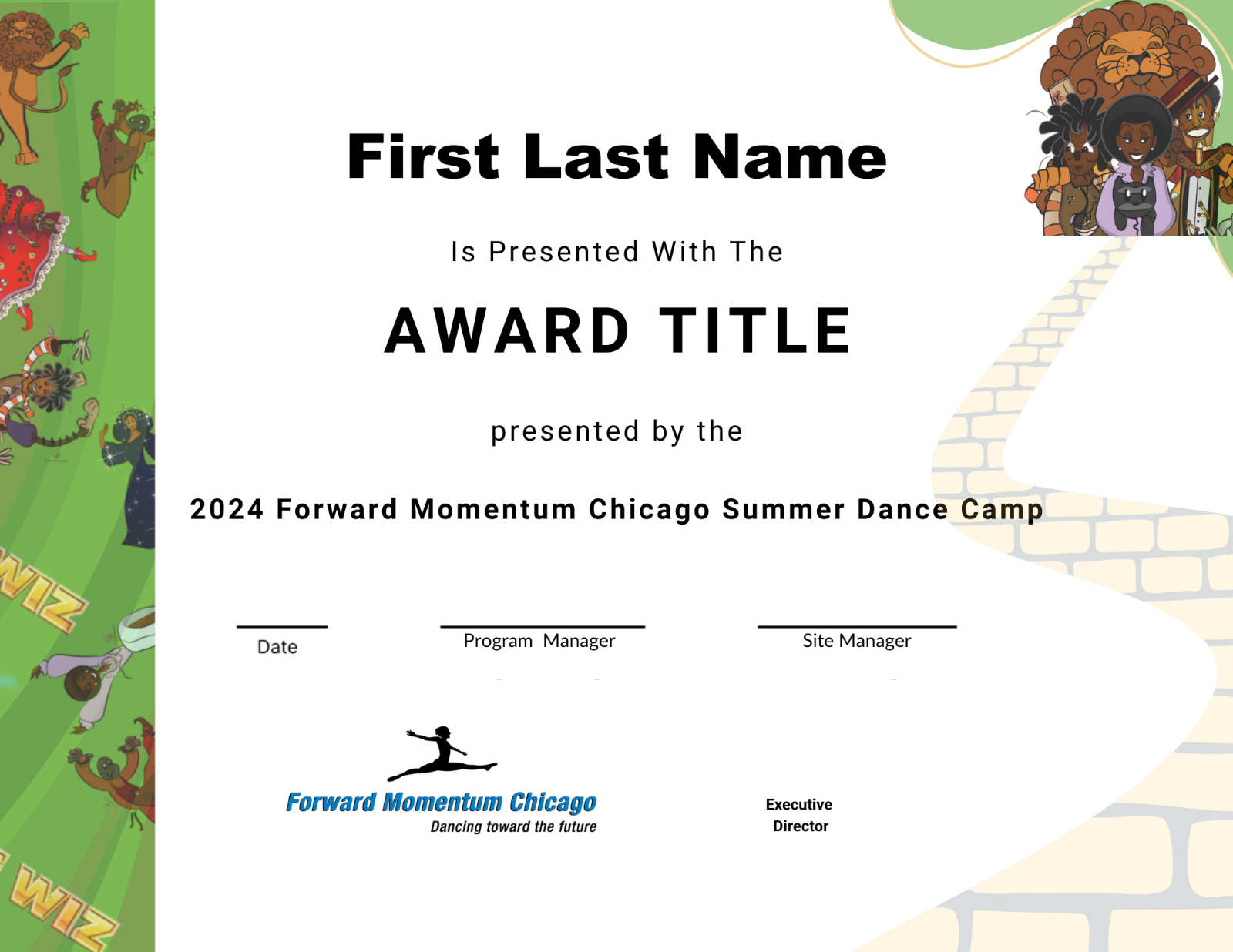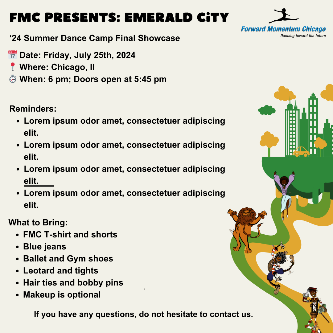 Forward Momentum Chicago is an arts nonprofit that inspires the possibilities of dance through education programs. Each year, they provide the children of Chicago with a five or six-week all-day summer dance camp. This year's theme was Emerald City! All Things The Wiz and The Wizard of Oz.