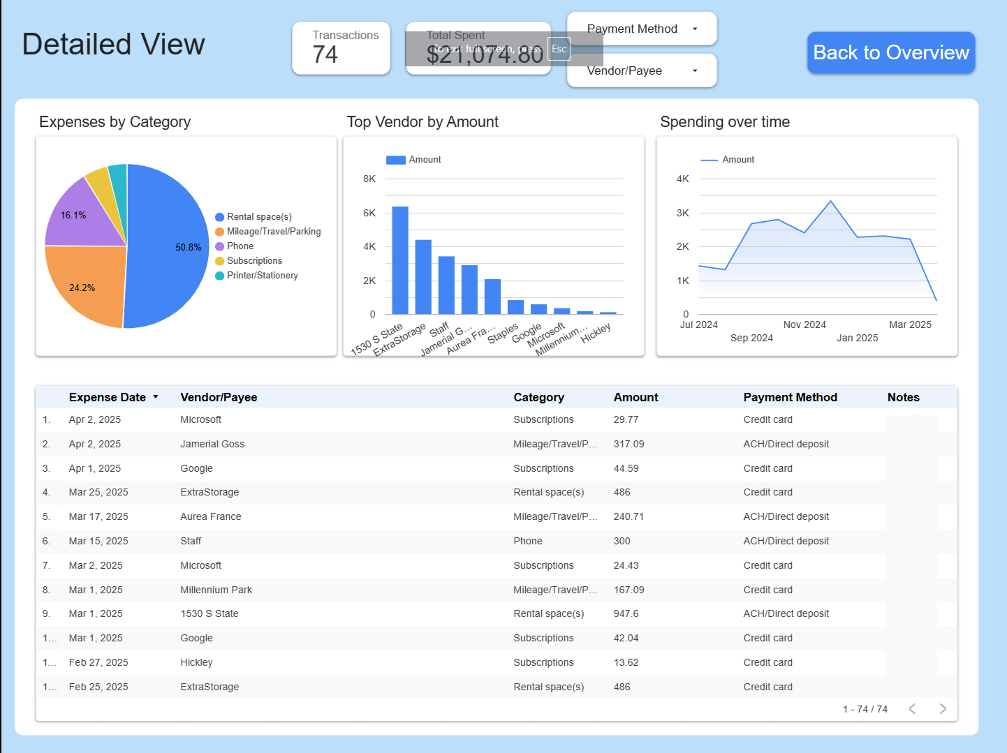 Don't stop at Google Sheets, import data from BigQuery or Airtable into Looker Studio in a breeze. While this system does not replace an accountant, it can scale beyond departments and be something for company-wide expenses.